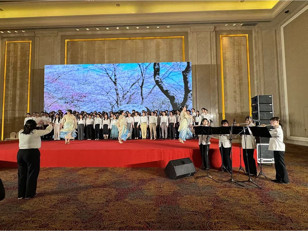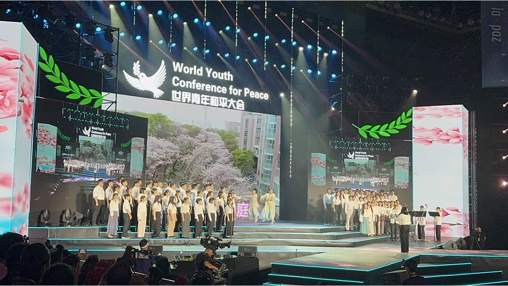 下午,参加了在北京大学举办的“世界青年和平大会”。创价大学访华团现献唱了一首《樱花缘》。这首歌承载着创大生们对日中友好的渴望和信心。他们发自肺腑的歌声让人感受到青年团结一心、共建和平未来的力量。